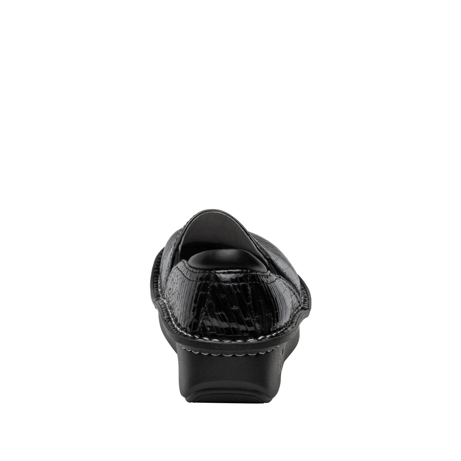 Featured in a fun Brick By Brick embossed design on patent upper.