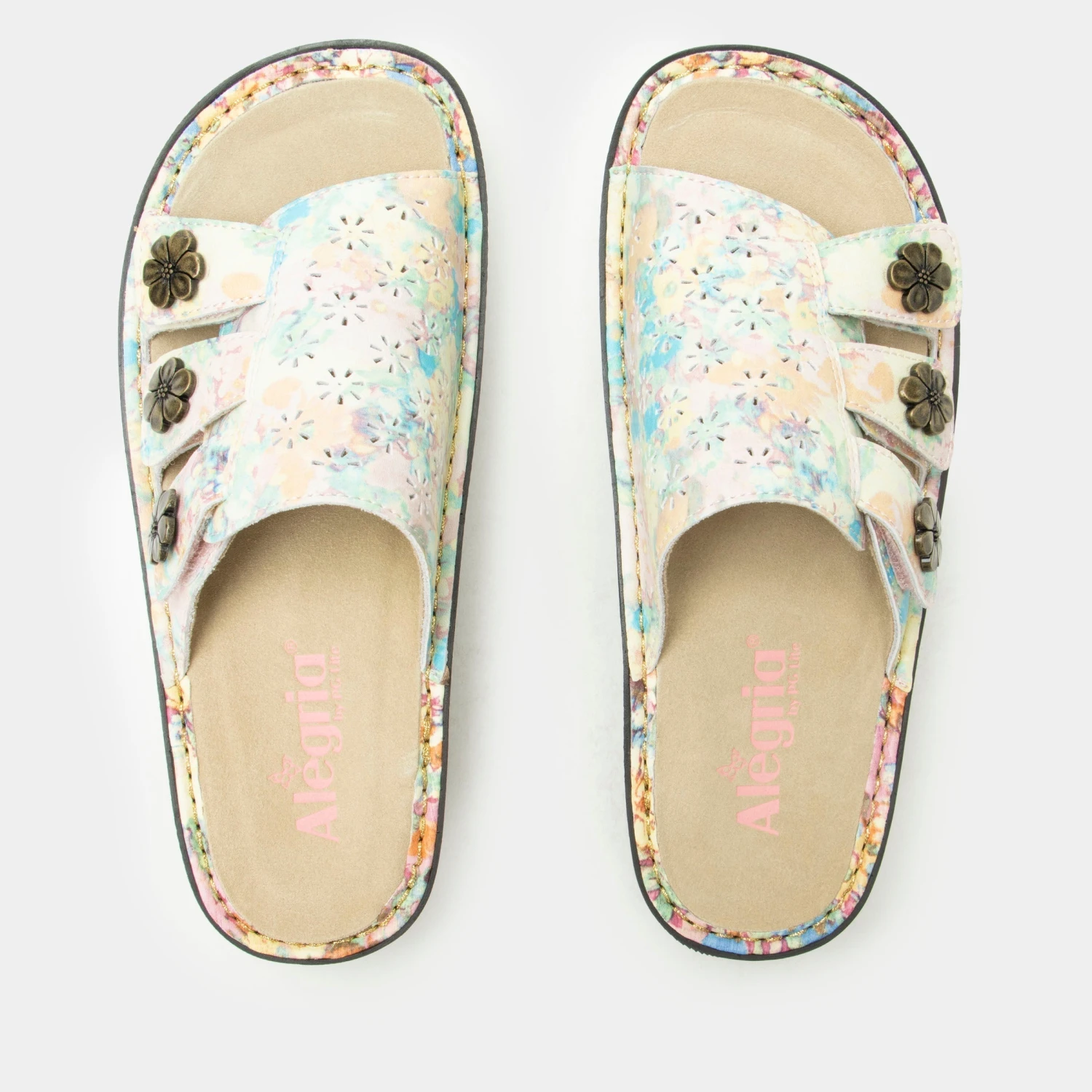Featured in a Earth Goddess colorway on a pastel floral printed leather upper.