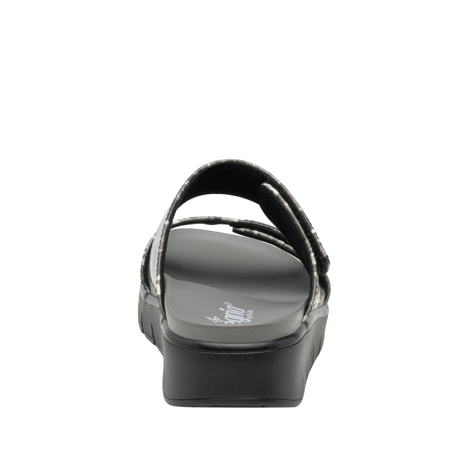 What could be easier to wear than this vegan leather sandal that slides on and off in a flash with a duo of adjustable hook-and-loop closure straps. The contoured footbed and lightweight retro-inspired heritage outsole adds even more function to this essential summer look. Featured in a neutral Collage Greys print, this versatile colorway will be an essential addition to your sandal collection.