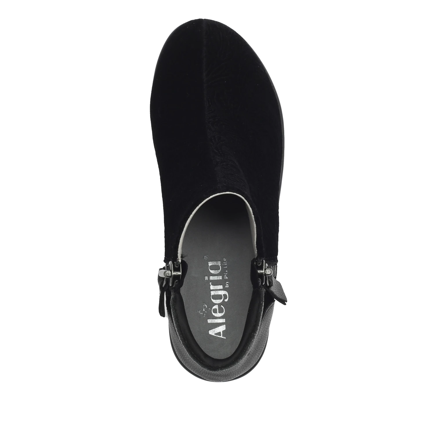 Featured in embossed stretch Raven Velvet upper for the ultimate luxe look and feel.
