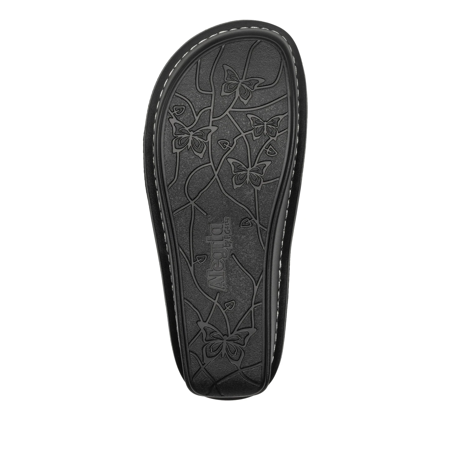 Decorative ornaments with a handmade touch elevate a pair of bold adjustable hook-and-loop straps on this versatile leather slide. Keeping feet well cushioned and supported in a removable memory foam and cork footbed coupled with a mini outsole.